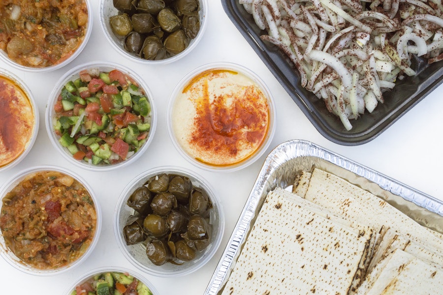 Combination of grilled & roasted eggplant, tahini paste, garlic, lemon juice, & salt that is blended into a dip that is creamy deliciousness