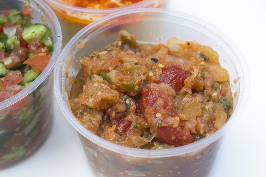 Diced tomato, cucumber, lemon mint dressing, with a touch of onion