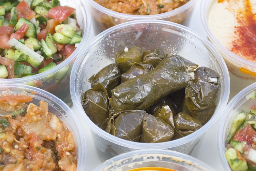 Stuffed grapes leaves with rice, herbs, spices & sautéed onions