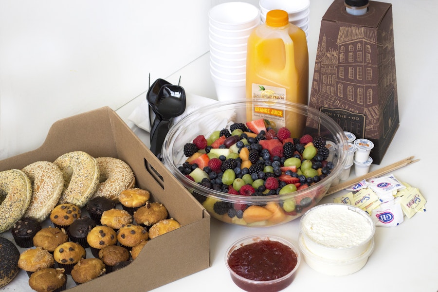 Keep it classic with a delicious bagel & fruit breakfast spread from The Bagel Broker, LA's reigning bagel experts for the last 20 years and counting. Enjoy a bagel and cream cheese, or muffin, with a coffee or OJ and fruit salad!